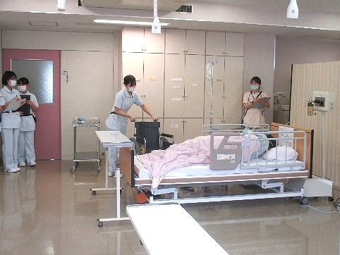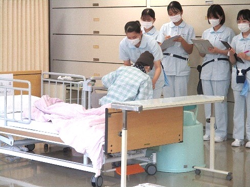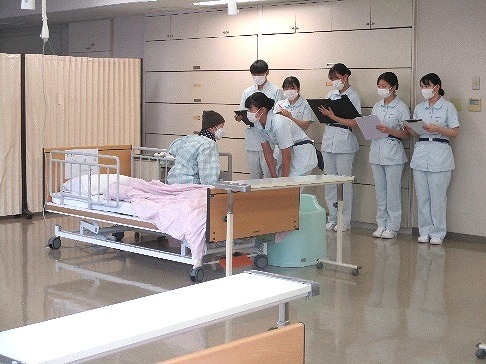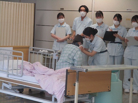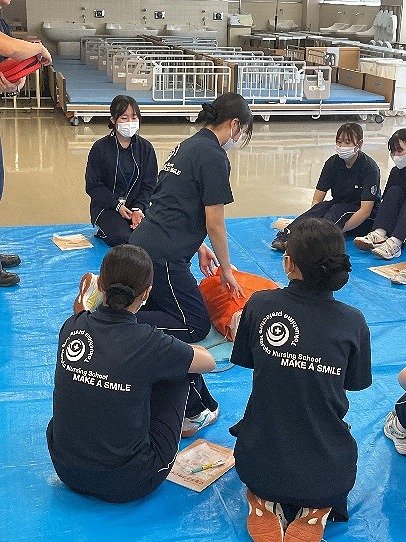 令和6年10月26日に、5年ぶりに学生祭(鳴看祭)を開催しました。当日は鳴門住民の方、病院スタッフや保護者の方々、大勢にご来場いただきました。チュロスや綿あめ、アイスの実入りジュース、アメリカンドッグなどの模擬店や、バザーやキャンドルすくい、体験ブースには老年体験、妊婦体験等賑やかに催しを行いました。 高度化・多様化する臨床現場に対応できる「実践力」を備えた看護師の育成を目指して、平成23年より3年次後期の統合実習前にOSCE(Objective Structured Clinical Examination:客観的臨床能力試験)を行っています。令和7年9月4日に実施されました。学生は看護技術の練習とシミュレーションをグループ単位で積み重ね、多重課題・時間切迫・業務割り込みといった状況下で、自己の力量の判断並びに優先順位の決定、他者への協力依頼・個別性を考慮した看護実践が行えるよう学習しています。教員が患者や看護師に扮し、臨床現場により近い状況を作り取り組んでいます。今年度も、3年生が真剣に取り組み、深まりのある演習を行うことができました。 令和6年11月19日(金)、防犯研修が行われました。鳴門警察署の方々も来校してくださり、人身安全などについて研修をしてくださいました。研修では護身術の実技指導も受け、防犯や安全に関して知識や技術も学ぶことができました。まずは身の安全を守ることの重要性など、良い学びを得ることができました。