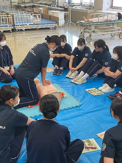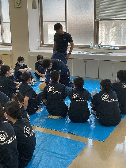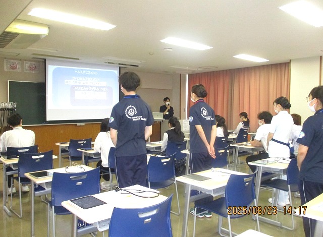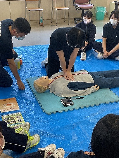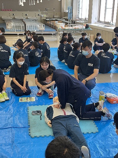 令和7年7月15日に、心肺蘇生法(CPR)の普通救命講習として、鳴門市消防署の救急救命士の方々に救急現場で必要な知識・技術を具体的に教えて頂きました。心臓や呼吸が止まった人たちの命を救う心肺蘇生法の手技の習得に、真剣に取り組みました。
