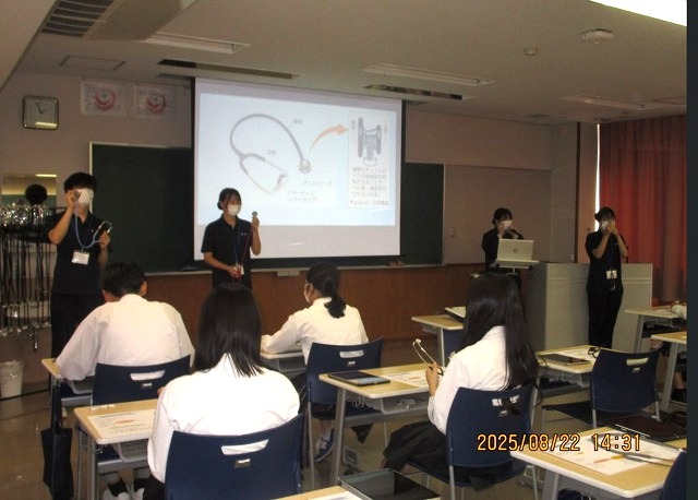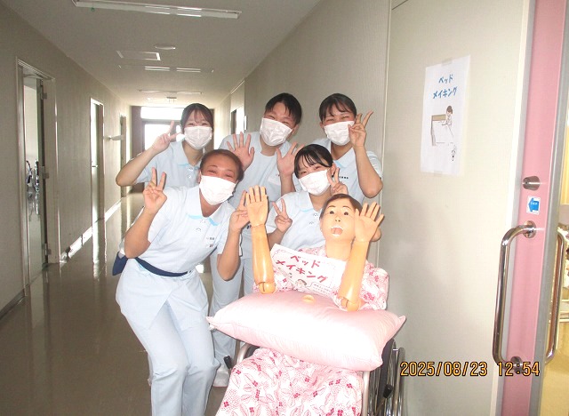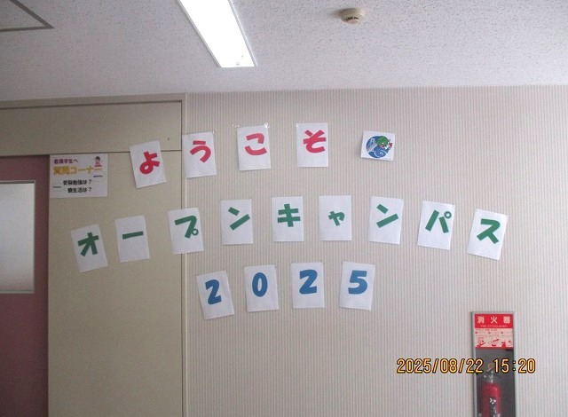 令和7年8月22日(金)・23日(土)、オープンキャンパスを開催しました。1・2年生の看護学生が中心となり、校内の案内を行い、看護技術演習コーナーでは沢山の方々に実際に体験していただくことで、学校の施設や、学生生活の雰囲気を直に感じてもらえました。懇談会でも活発な質問があり、活気あふれるオープンキャンパスとなりました。