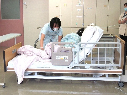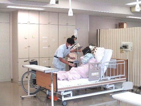 医療機器メーカーの方を講師にお招きし、自動輸液ポンプについて学習しました。実際の自動輸液ポンプに触れ、使用方法を体験することを通して、正しい手技の学習が深まります。