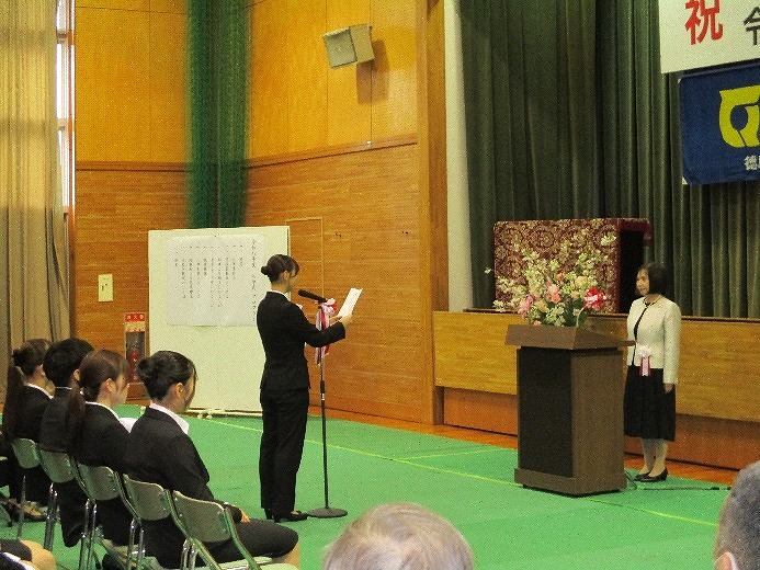 美馬学校長から卒業証書が手渡されたあと、卒業生を代表して小川 璃琳さんが「患者様に寄り添うということを忘れずに、責任感と誇りを持ち、患者様の声に耳を傾けていけるような看護師になれるよう、これからも努力を続けて参ります。」